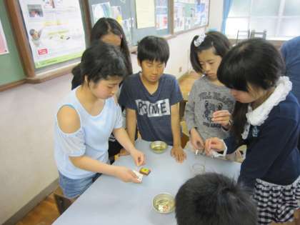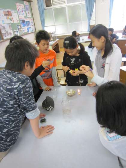 6年生は,理科で「ものがもえるのに何が必要か」を実験で確かめていました。