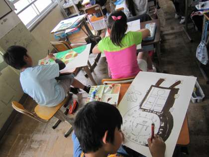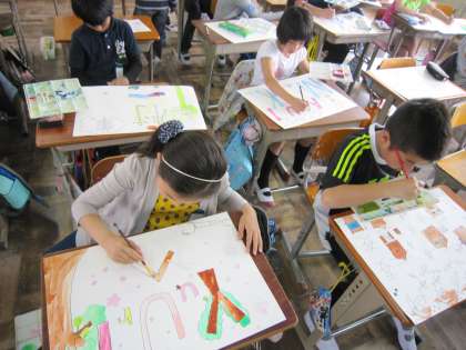5年生が,図工で「えっ 名前が」に取り組んでいます。