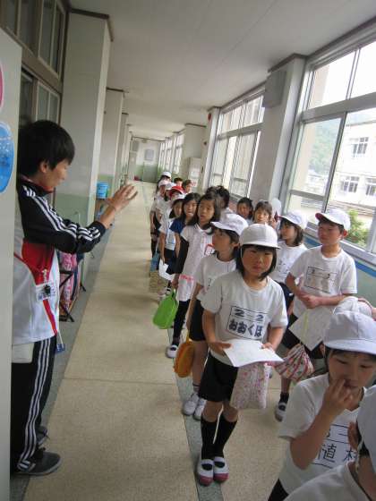 3年2組の前を通ると,体育服姿の子ども達が,静かに並んでいました。