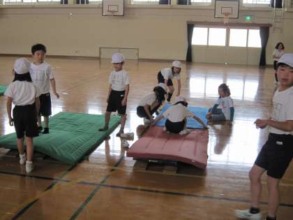 担任は黙って見守っていましたが子ども達は自分たちで注意しあいながら並んでいました。そのあと,体育館に並んで行き,みんなでマット運動の準備をしていました。