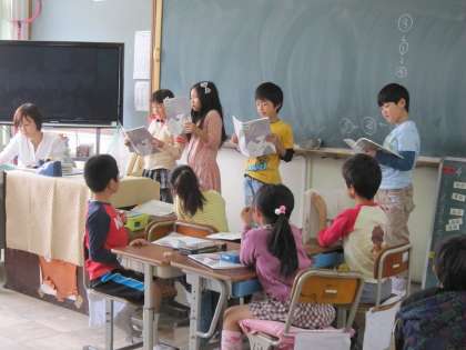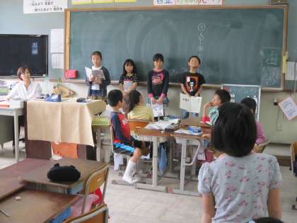 3年1組では,国語で学習中の「きつつきの商売」の音読をグループごとに発表していました。発表を聞いた子たちは,聞いて感じたことを発表していました。