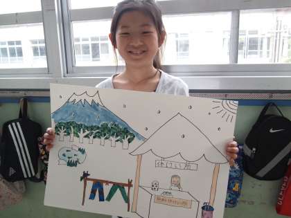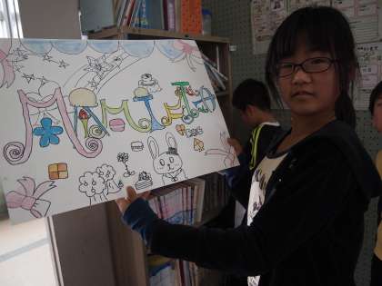 5年1組は図工の時間です。自分の名前を絵の中に織り込んでみました。ひらがな・カタカナ・漢字・ローマ字,なんでもO.K.です。