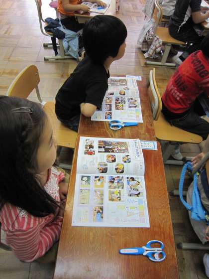1年生は,みんなでかざろうという学習で,はさみの使い方の練習をしていました。