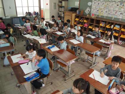 2年2組は算数のひき算に取り組みました。考えた後,手を挙げて説明する練習をしていたようです。