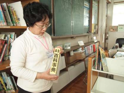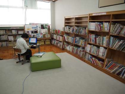 少し前から学校図書館運営支援員の山本先生が来てくださっています。秋ごろを目途に図書館の本の整理や並べ替えを検討しています。今はその準備段階でシールを貼り替えたりパソコンデータの整理などをしてくださっています。学校がどんどん変わります。
