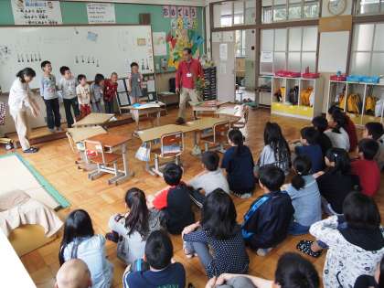 あおぞら学級と6年2組の顔合わせ,自己紹介が楽しい雰囲気で行われていました。