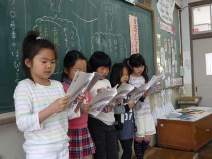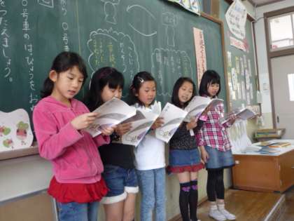 発表の様子。一人ひとりが自分の役目を熱心に果たしていました。