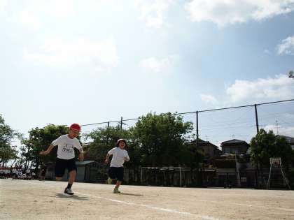 50m走をやっていたのは1年生。まっすぐ走ったり最後まで走りきったりするのはなかなか大変ですがみんながんばっていました。