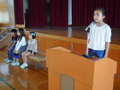 「きらめきタイム」 本日は原稿なしでやってみました。子どもたちはなかなかしっかり覚えていて,家でも努力しているのだなと感じました。