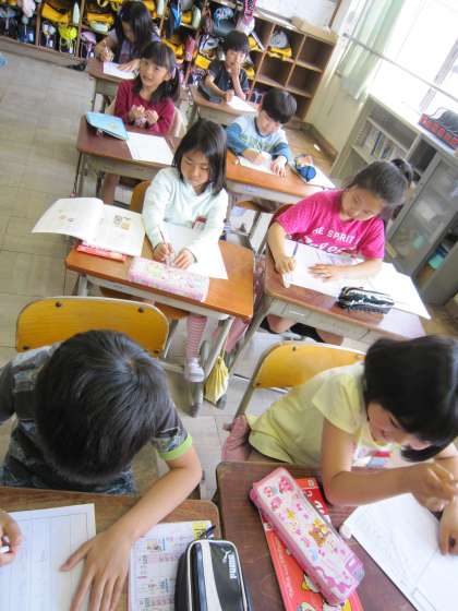 3年1組では,国語で学習したことをもとに,動物の看板を考えていました。子どもたちの様子を見ていると,どんどんかき進める子となかなか進まない子とがいました。子どもたちの様子を見ていて,思いを形に表すって難しいなあと思いました。