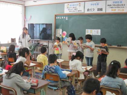 4年1組では,これまで練習してきた「白いぼうし」の音読劇をしていました。