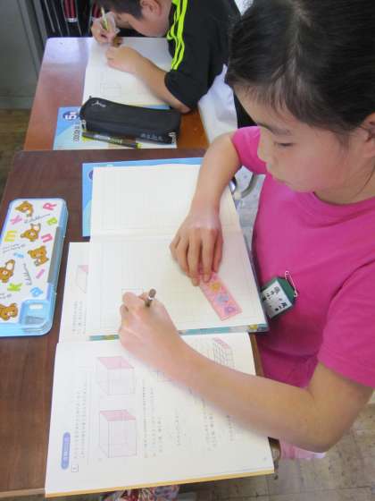 今日は初めに立方体をまずかき,そのあと体積の学習をしました。