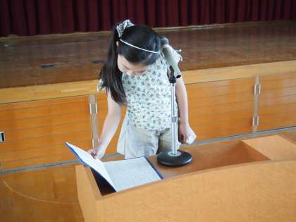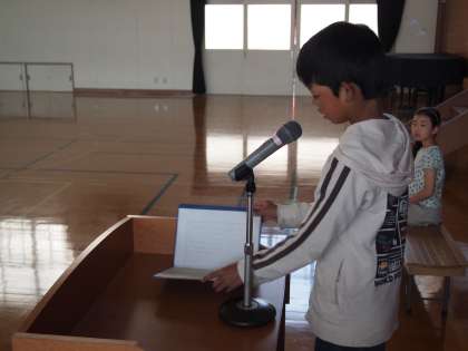 今日も「きらめきタイム」の特訓がありました。子どもたちは原稿をもう7割くらいは憶えていました。さすがの記憶力と努力です。時々忘れたところは見て確認していました。さぁ,本番まであとちょっとです。がんばろう!