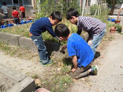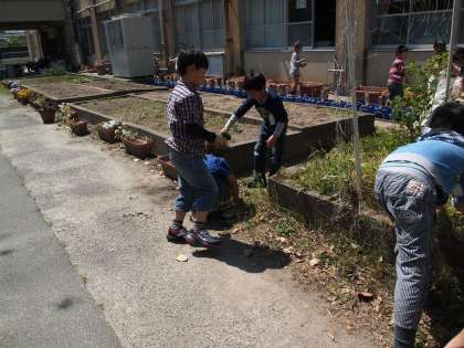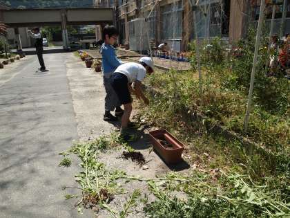 学校園でも低学年の子どもたちが一生懸命雑草を抜いていました。みんなとても頑張っていましたよ。