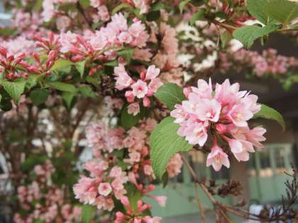 先日は「立夏」でした。大わたりろうかのちかくに,初夏の陽ざしに美しく映える赤い花をつけた木があります。ハナミズキと入れ替わるように咲き始めたこの花ですが,名前がわかりません。教えていただけたら幸いです。