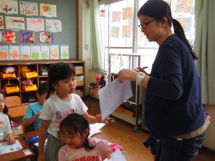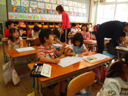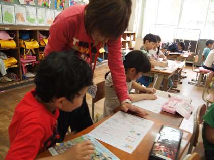 1年1組はひらがなの練習タイムです。「は」と「ほ」にお取り組んでいました。よく似た文字なので間違いやすいのかな…。