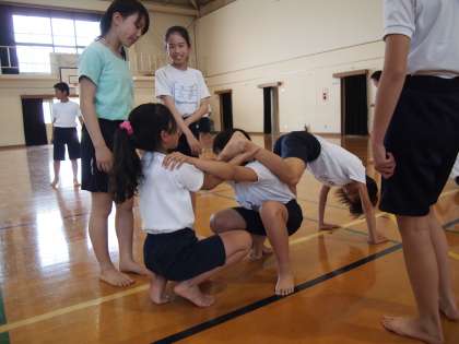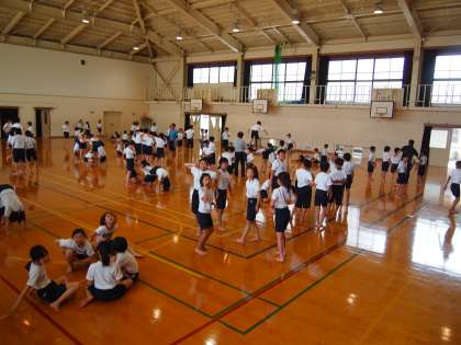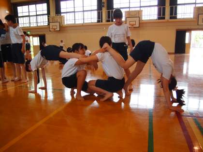 5・6年生に合同体育です。もちろんゴールは運動会の組体操の完成です。まだ始まったところなので,いろんなことがバラバラではありますが一生懸命の熱気を感じました。