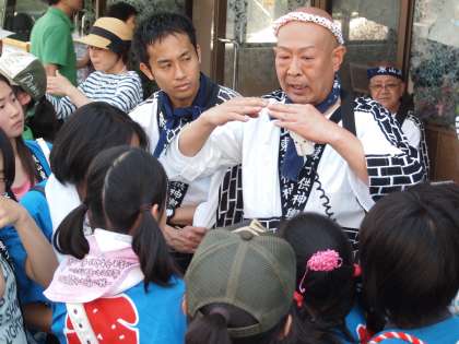 保存会の方のお話を真剣に聞く子どもたち…。