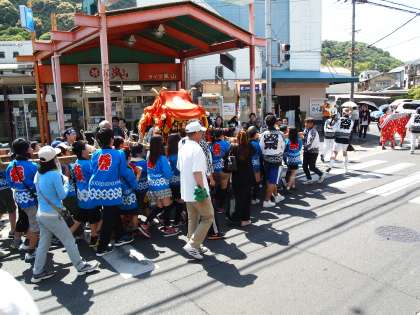 まちを練り歩く子供神輿。見慣れた風景です。