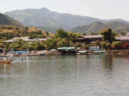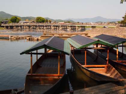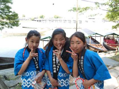 子どもたちのうしろに写っているのは「渡月橋」です。なんと贅沢な背景でしょう。