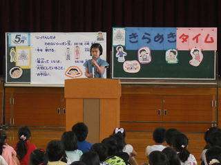 『手をあげる』の発表です。2年生の時はあまり手をあげることができなかったけれど,3年生になって全員発表ができるように自分もがんばりたいという気持ちの変化があったことを述べてくれました。