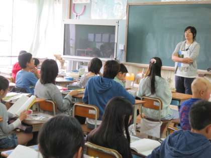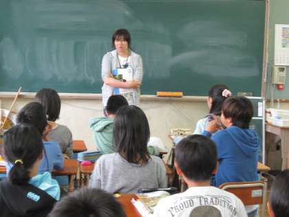 「縄文時代に使われていた住居は何と言いますか」と聞かれて,さっと手を挙げる子たち。「食べられていた食べ物は何でしたか」と聞かれて,少し戸惑う子もいました。