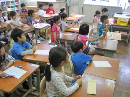 1年2組では,算数で「すうじ あそび」をしようとしていました。