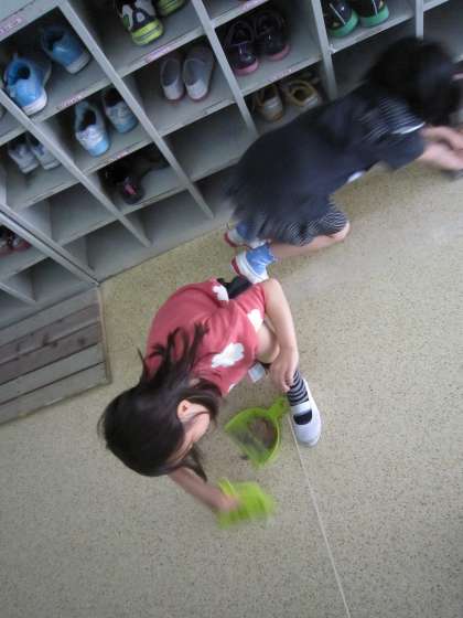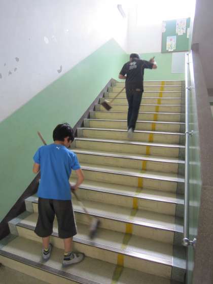 階段などの隅々まで、きれいにしようとする子どもたちを発見しました。