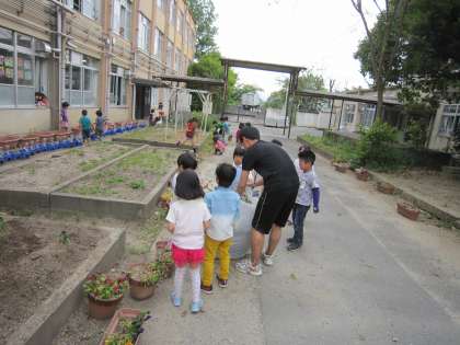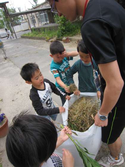 中には、枯れた草をいっぱい手に担任の森岡先生に,笑顔で手渡す子がいました。