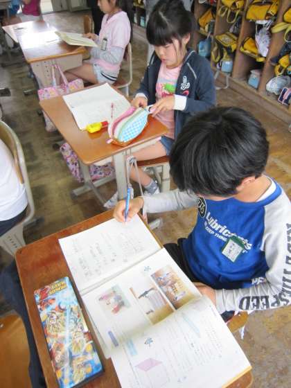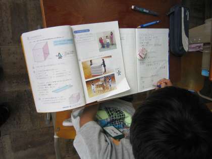 5年1組では,算数で学習したところの問題に黙々と取り組んでいました。