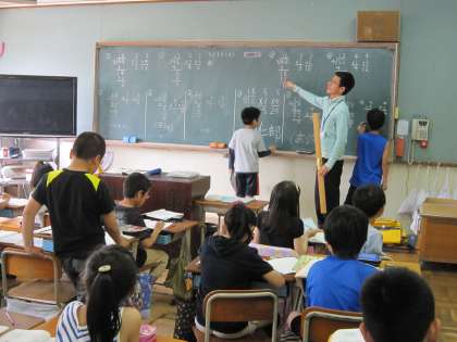 ノートに問題の解答を書いた後,黒板に代表の子が書き,みんなで方法を確かめながら定着を図っていました。