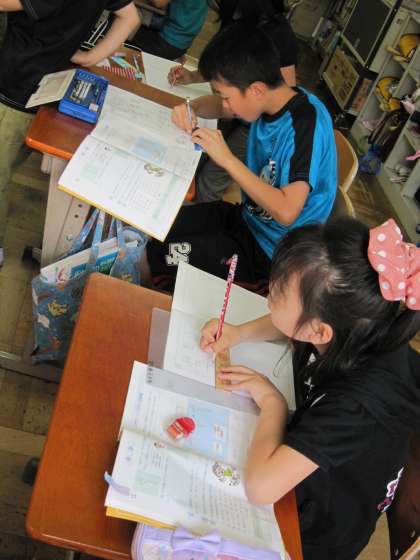 4年2組では,算数で割り算の筆算の練習をしていました。