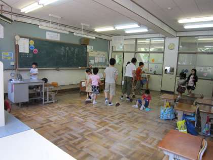 掃除の仕方を教わりながら,教室をきれいにしていました。