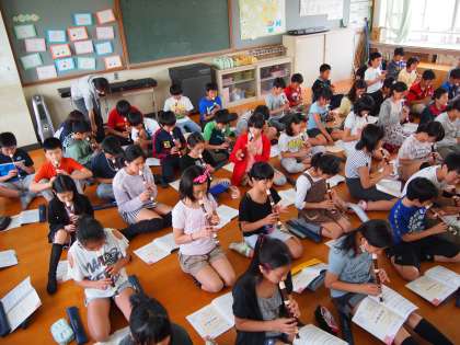 リコーダの合奏はみんなの気持ちが一つになることが必要です。先生のアドバイスを聞きながら上手になっていっているようです。がんばってね!