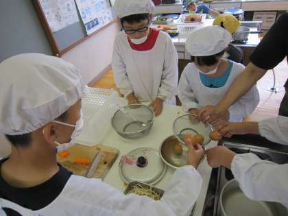 必要なものを洗った後は,ゆで卵を作りました。