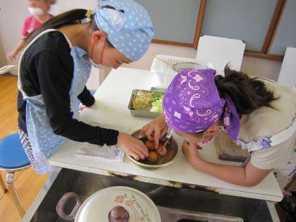 5分ゆでて半熟にした子と10分ゆでた子とがいました。ゆでた後,水の中で冷やすとき自分のがどれか気になって仕方のない子もいました。