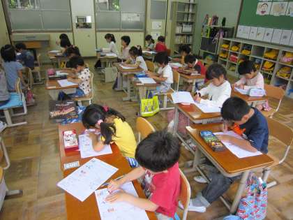 練習のプリントをもらうと,ほとんどの子がすぐに名前を書いていました。