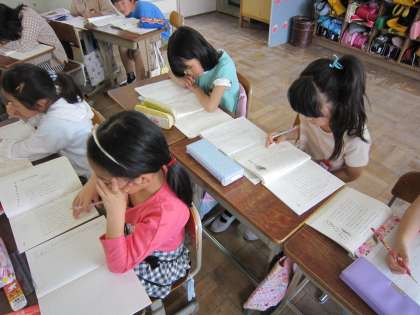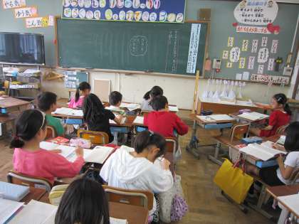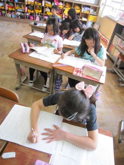 中には,前から知っていることばかりなので書くことがないという子もいましたが,知っていることを覚えているということは,心に残っていることだからそのことを書いたらどうですかとアドバイスされていました。アドバイスの後,えんぴつを持って感想を書いていました。