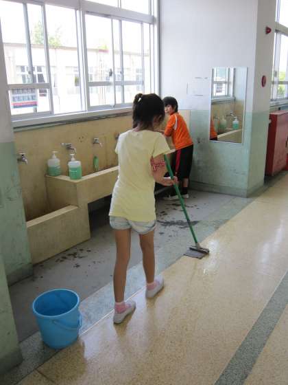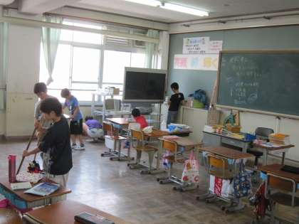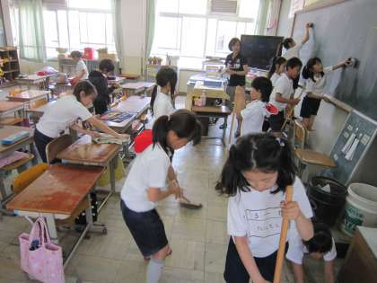 見ていると,黒板の横にあるロッカーの上をふいている子もいました。