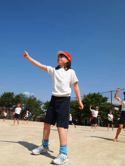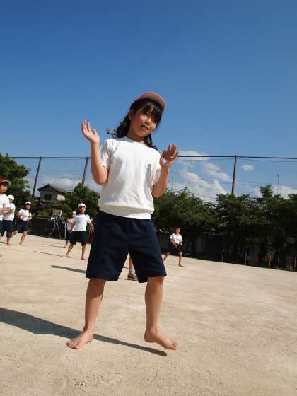 横で見ているとだんだんできつつあるのがわかります。「あらひがブルー」の空に白い体育服が映えますね。