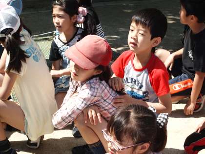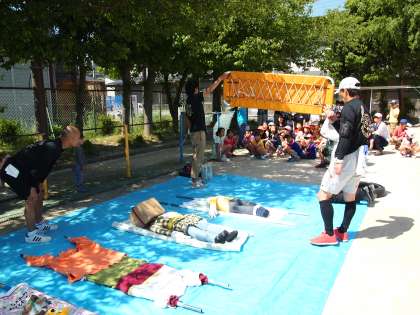 こちらは担架で人を運びます。毛布などを利用する方法も教えてもらいました。
