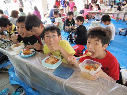 みんなお行儀よくいただいています。「おいしい,おいしい…」