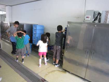 毎日給食を返す時間になると,給食委員が給食室サービスホールに現れます。