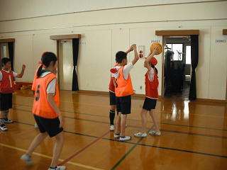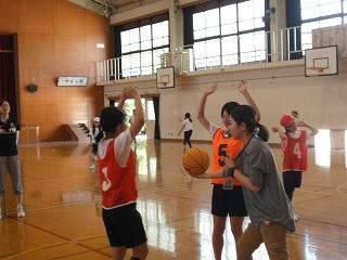 二人組でパスをした後,3チームの対戦で5分間ゲームを楽しみました。