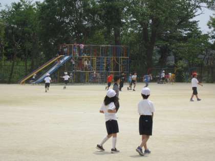 中間休み 多くの子ども達が元気に運動場で過ごしていました。