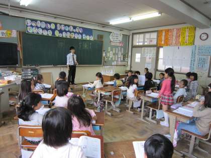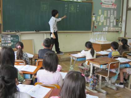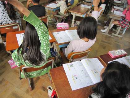 書き順などを学習した後,使われている漢字の発表をしていました。さっと手を挙げて発表しようとする子が多かったです。