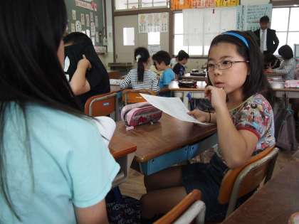 隣の席のお友だちと主人公の男の子の思いについて意見交流をしています。どんな話が出てきたのでしょうか。