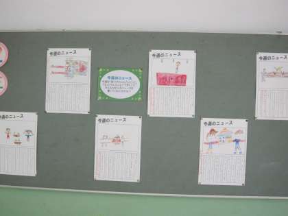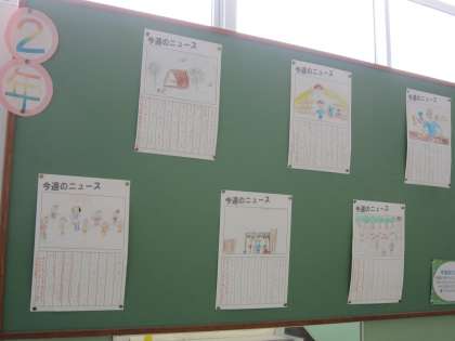 2年生が国語で学習していた「今週のニュース」が掲示板に掲示されていました。