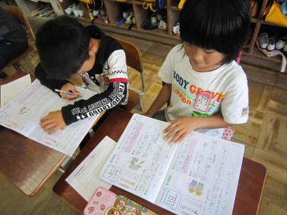 今日の2年1組では,かんじノート直しをしていました。以前に練習したところを直していました。こうして直していくことで一層漢字を覚えることができるのです。直していたら,「がんばっているね」と一声おかけくださると幸いです。