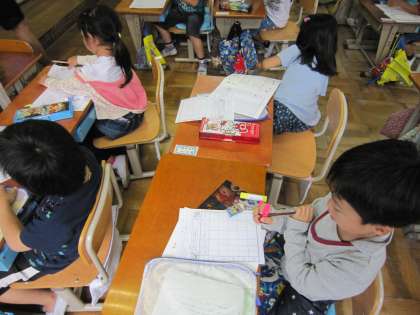 1年生は,毎日音読をしています。今日は今週のチェックカードの用意をしていました。